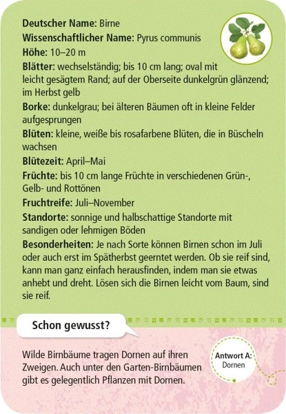 Jeweils ein Thema wird auf der Karte illustriert und alle wichtigen Merkmale beschrieben. Dazu kommen wissenwerte Zusatzfakten und eine Quizfrage.
