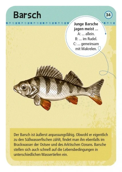 Jeweils ein Thema wird auf der Karte illustriert und alle wichtigen Merkmale beschrieben. Dazu kommen wissenwerte Zusatzfakten und eine Quizfrage.